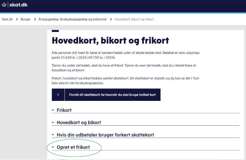Nu står der Nyt skattekort med frikortsbeløbet fra det pågældende år.