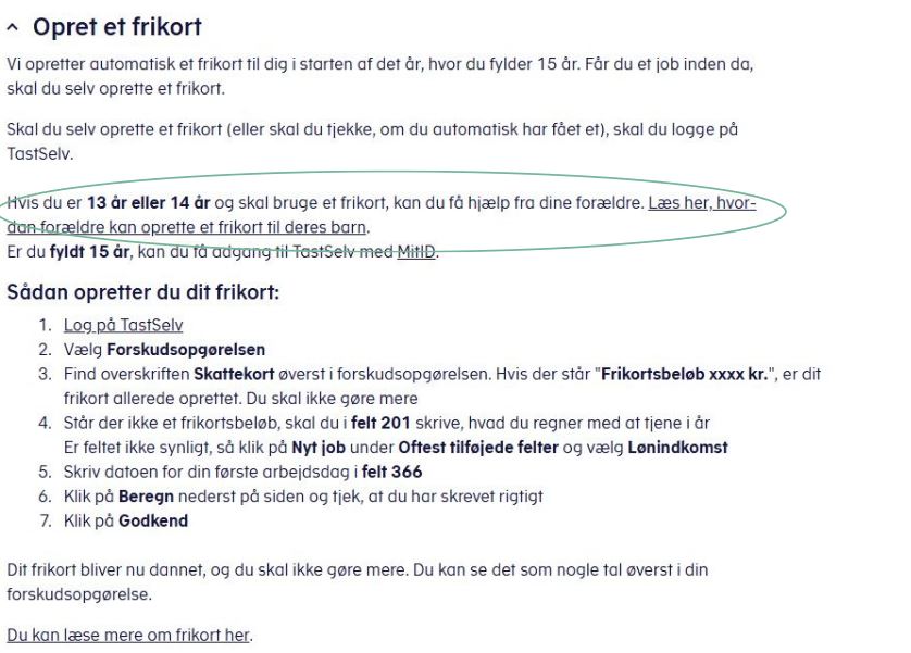 Klik på linket: Læs her, hvordan forældre kan oprette et frikort til deres barn.