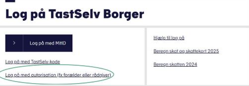 Klik på Log på med autorisation (fx forælder eller rådgiver).