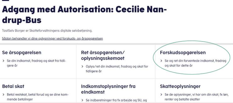 Klik på Årsopgørelse, forskudsopgørelse og indkomst.